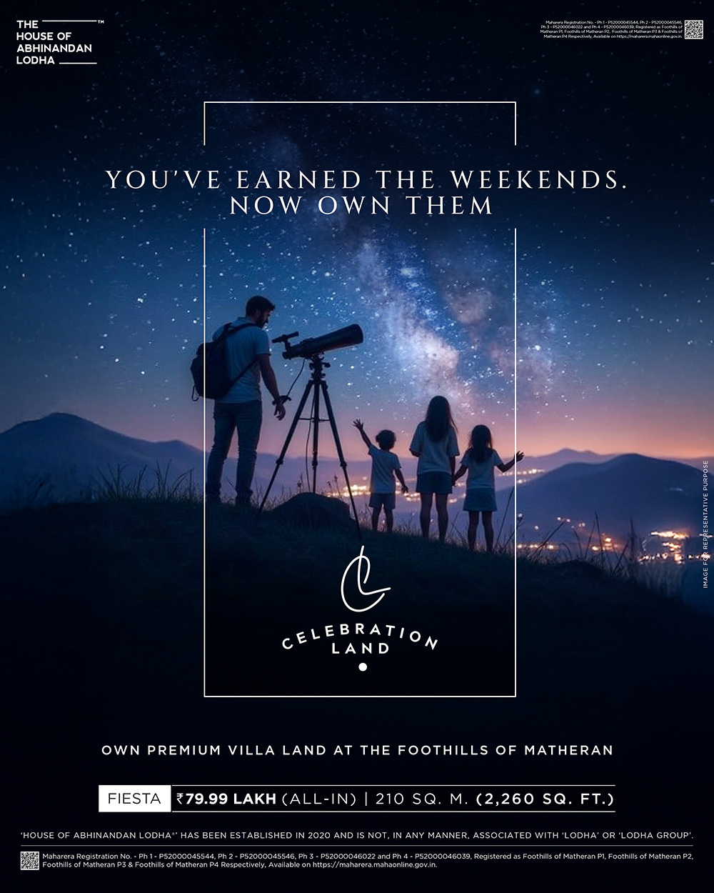 Have you ever paused and asked yourself what a typical weekend looks like in your life? Perhaps you slept in, rushed to get groceries, fixed something broken around the house, scrolled through your phone, ordered food, and just like that, Sunday was gone. You experienced a missing weekend. A forgotten time. At Celebration Land Neral, developed by India's largest branded land developer, The House of Abhinandan Lodha, we have built the ultimate answer to your missing weekends. And the best part? It is merely 90 minutes away from the noise of the city.